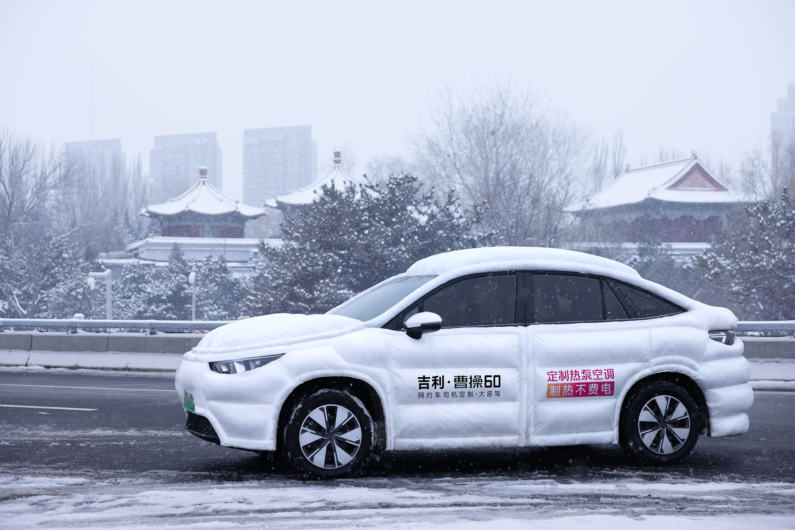 北京街头出现一辆穿羽绒服的网约车