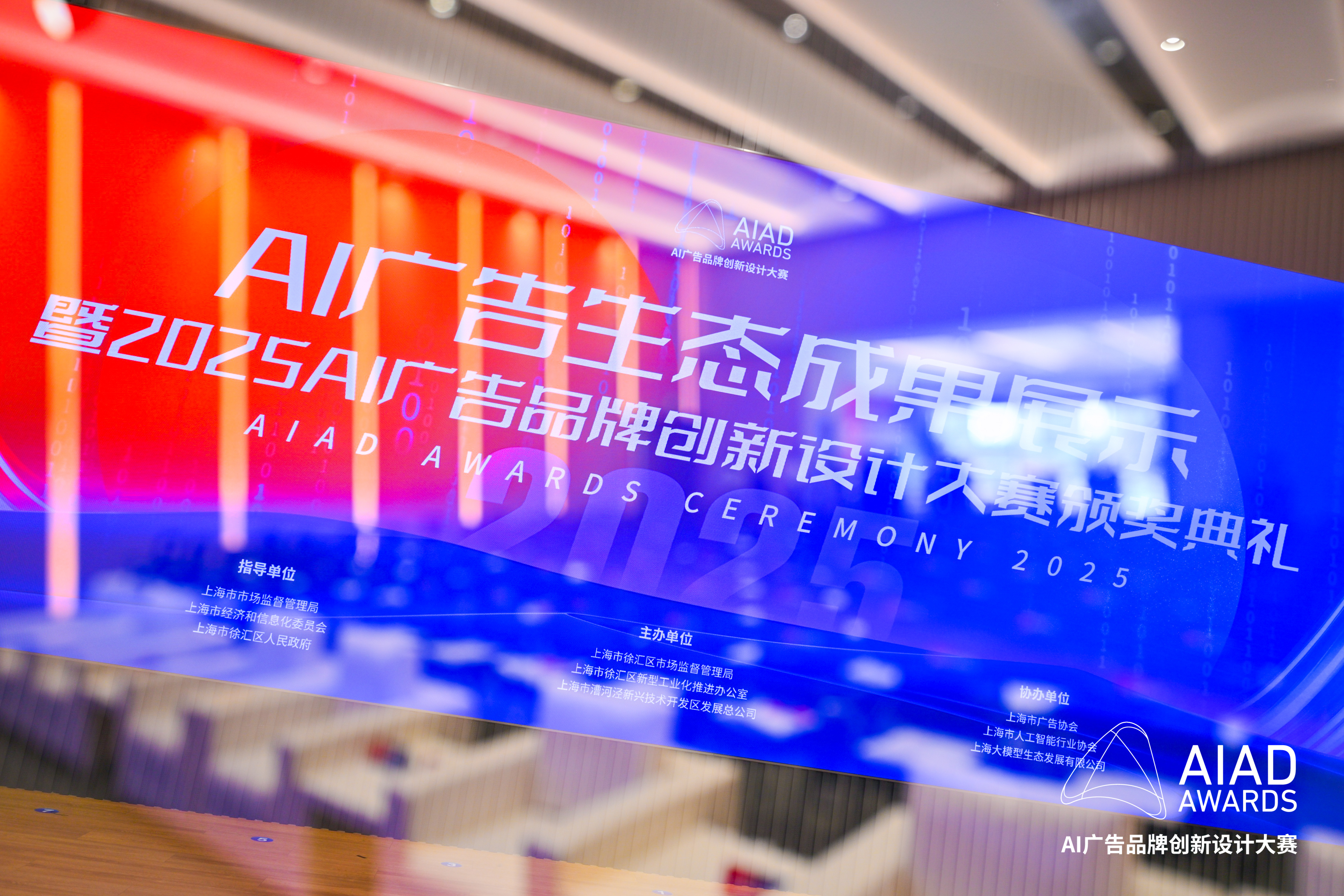 11月11日,2025年AI广告品牌创新设计大赛颁奖典礼在上海鑫耀 · 光环LIVE元界鑫空间圆满落幕。