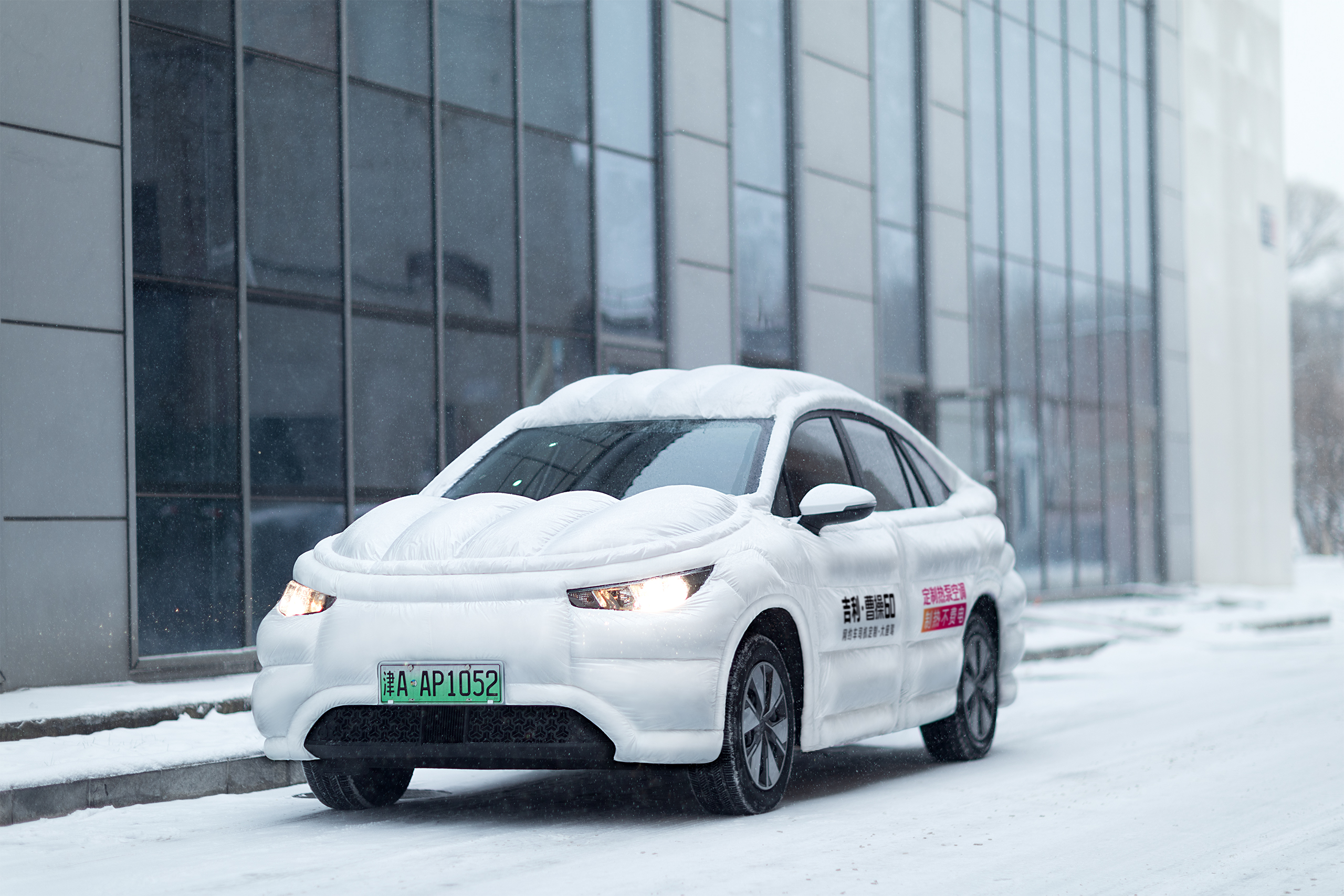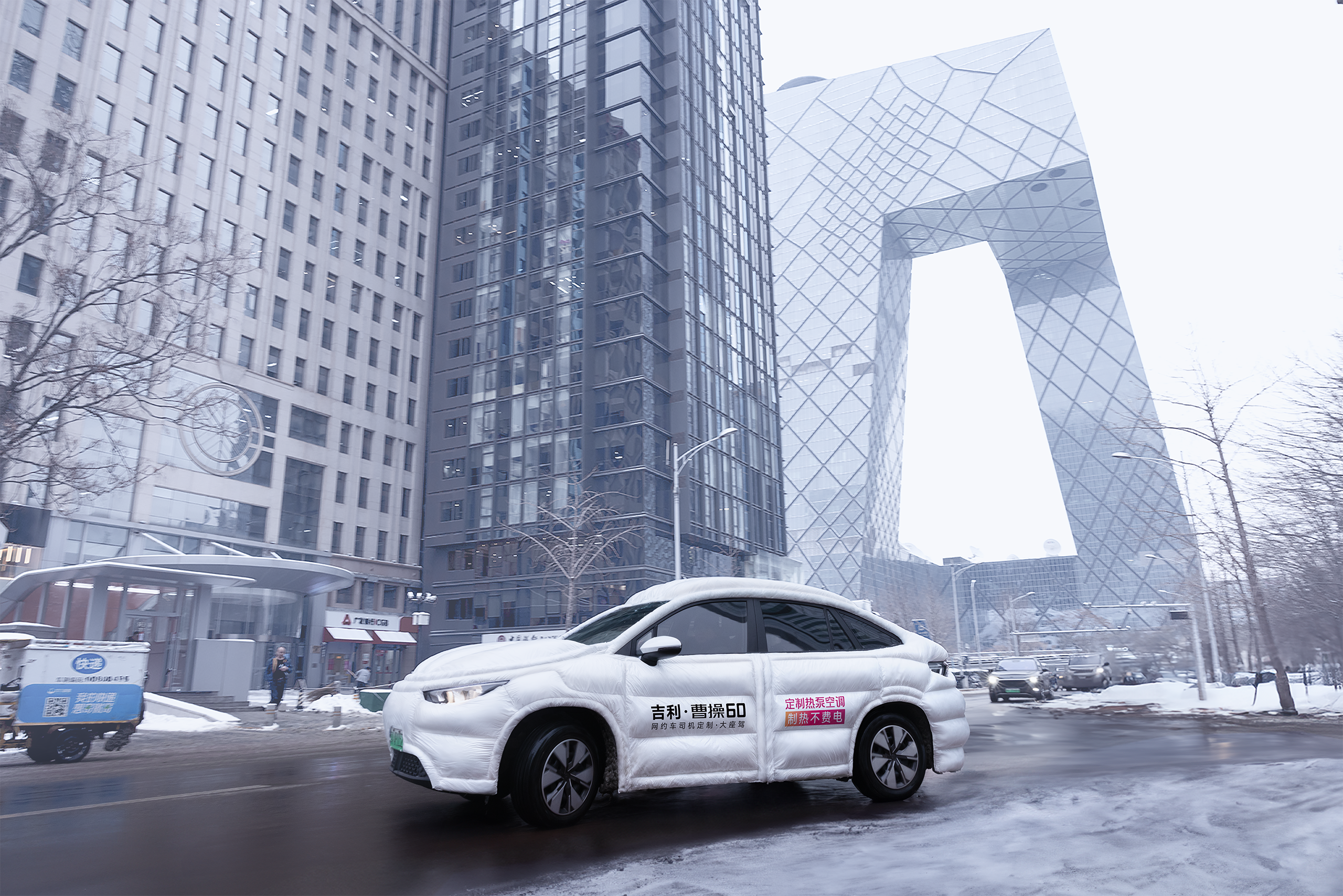 北京街头出现一辆穿羽绒服的网约车