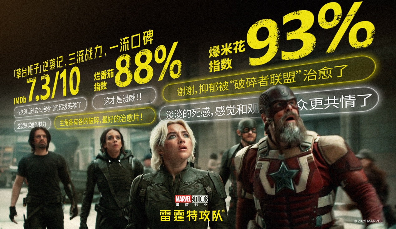 就是这部《雷霆特攻队》——一支被部分观众戏称为“丐版复联”的反英雄小队。作为新复联的启航之作,开局并不乐观:观众仍深陷初代英雄的情怀,对继任者并不买账。而我们的任务,就是绕开“新复联”,找到一个全新炒作切入点,激发观看欲望。